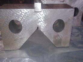 V型架主要用來(lái)安放軸,套筒,圓盤(pán)等圓形工件,以便找中心線與劃出中心線。一般V型架都是一副兩塊,兩塊的平面與V型槽都是在一次安裝中磨出的。